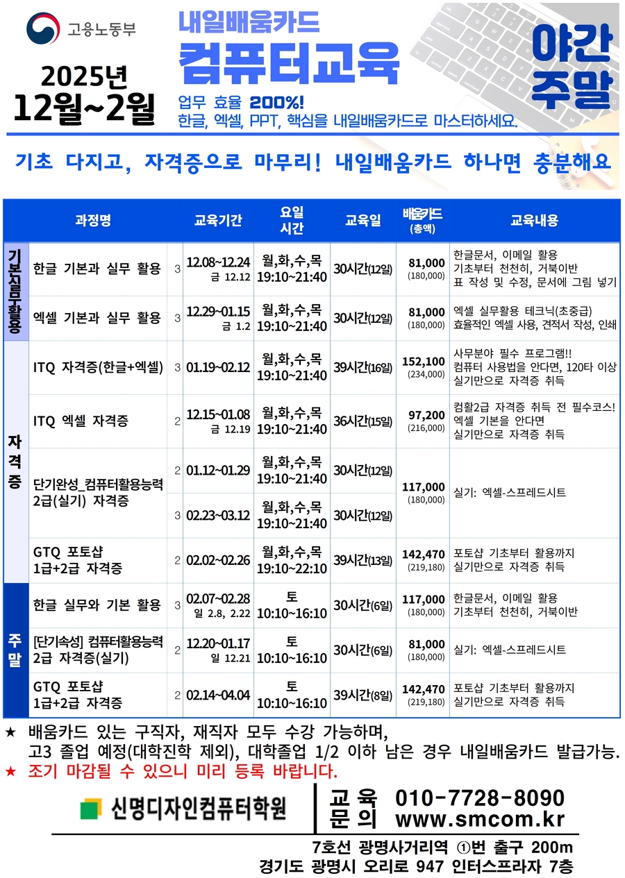 Á¦¸ñ [¡Ù ¾ß°£.ÁÖ¸» - ¹è¿òÄ«µå] ÄÄÇ»ÅÍ ±³À° (2025³â 12¿ù~2¿ù) ÀÛ¼ºÀÏ 2025.11.28 (24ȸ)