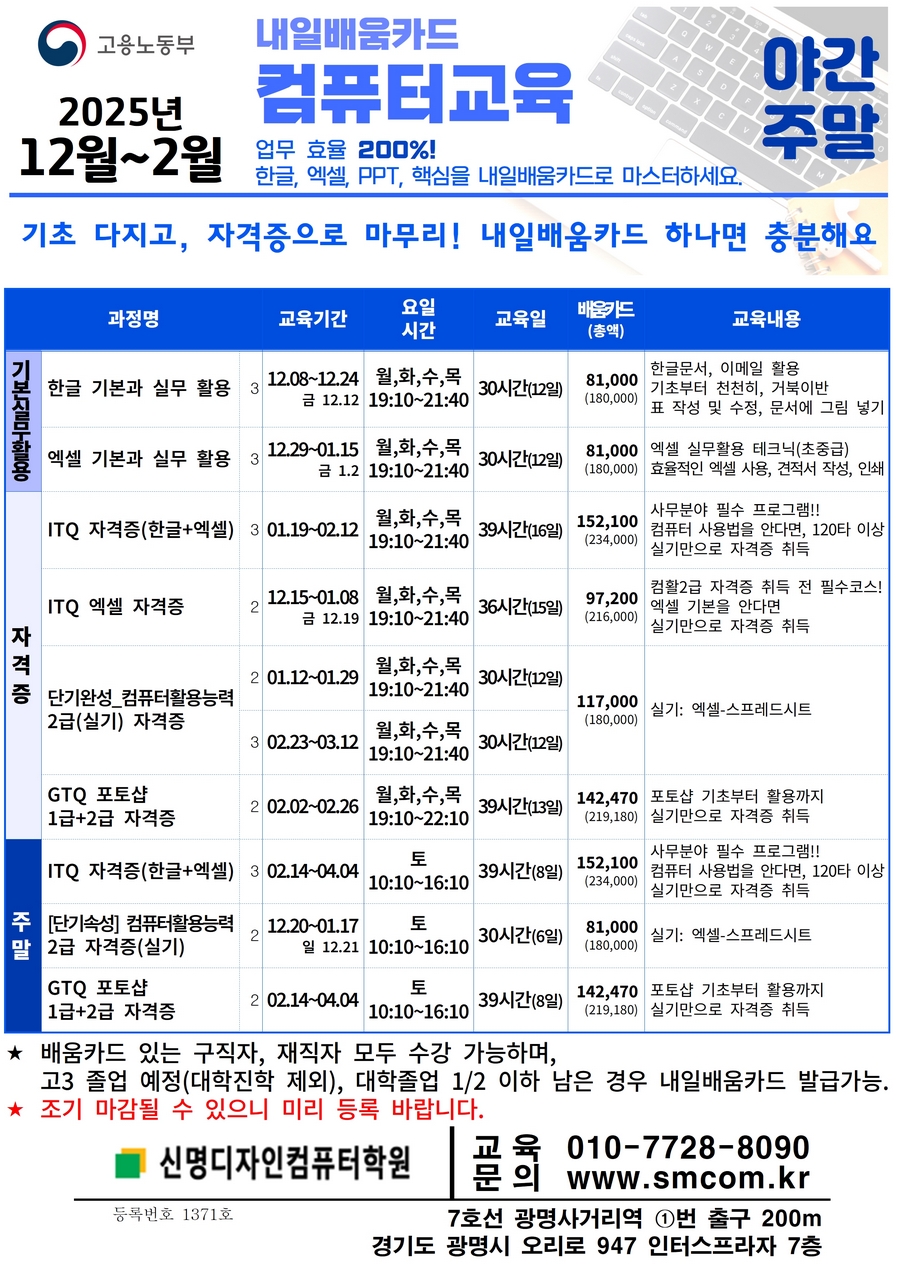 Á¦¸ñ [¡Ù ¾ß°£.ÁÖ¸» - ¹è¿òÄ«µå] ÄÄÇ»ÅÍ ±³À° (2025³â 12¿ù~2¿ù) ÀÛ¼ºÀÏ 2025.11.28 (89ȸ)