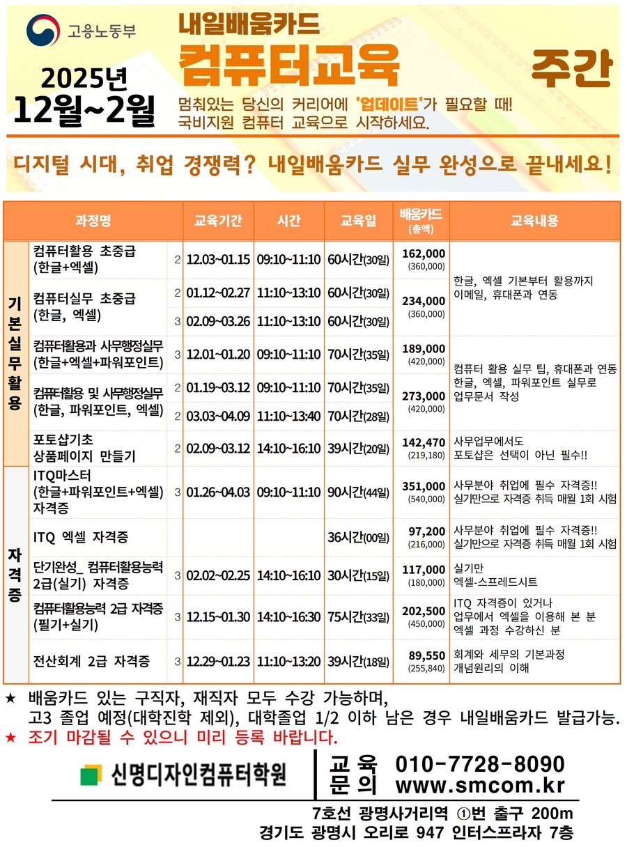 Á¦¸ñ [¡Ú ÁÖ°£ - ¹è¿òÄ«µå] ÄÄÇ»ÅÍ ±³À° (2025³â 12¿ù~2¿ù) ÀÛ¼ºÀÏ 2025.11.28 (35ȸ)